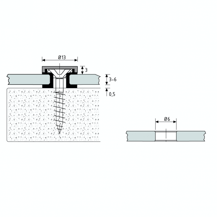 Optioneel zijn 4 puntbevestigingen bij te bestellen. Hiermee wordt het glas iets van de muur gemonteerd. Hiervoor wordt in het glas op ±30mm uit de randen een boring van ø6mm aangebracht. Hier gaat een schroef doorheen en vervolgens wordt het glas met de puntbevestiging hier op gezet (zie instructievideo bij het tabje "instructies".