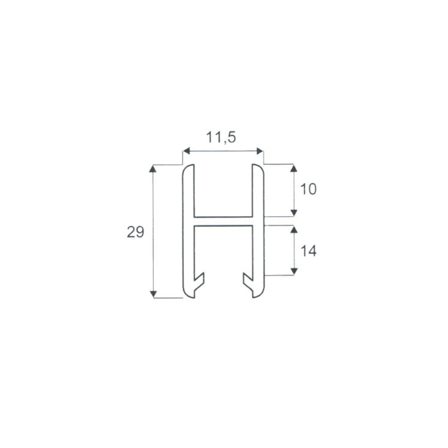 Aluminium loopschoen voor een schuifloket. Deze H-rail is geschikt voor 5-6mm glas. De maximale draagkracht per loopschoen is ca. 25 kg (2 rollen) en ca. 50 kg (4 rollen).