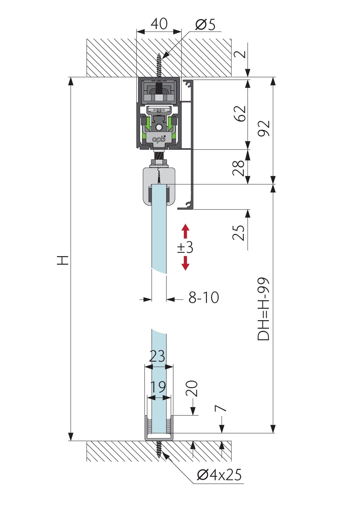 Specificaties automatische schuifdeur op maat van helder glas met gesloten railsysteem: