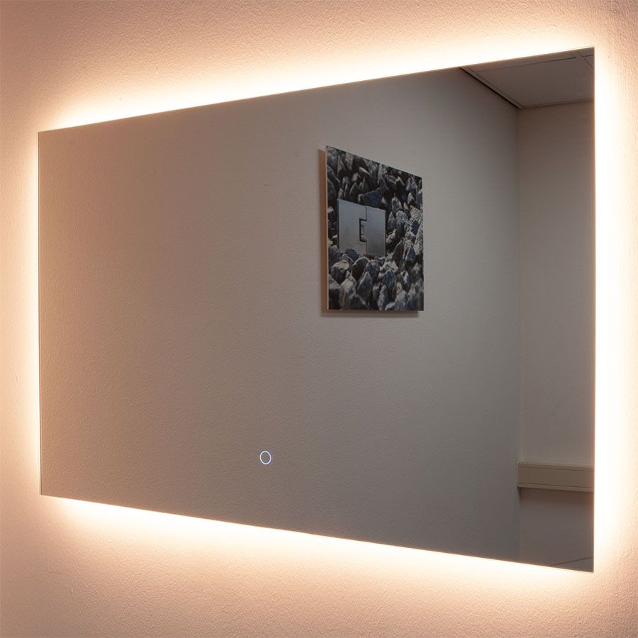Deze rechthoekige badkamerspiegel met indirecte LED verlichting en verwarming is een luxe en stijlvolle toevoeging in uw badkamer. De badkamer spiegel heeft geen frame en komt perfect tot zijn recht in iedere badkamer. De badkamerspiegel is voorzien van LED verlichting aan de achterzijde wat zorgt voor een sfeervol indirect licht. Om condensvorming op de spiegel te voorkomen is aan de achterzijde van deze LED badkamerspiegel is een spiegelverwarming (heat-pad) verwerkt waardoor de spiegel altijd vrij blijft van condens.