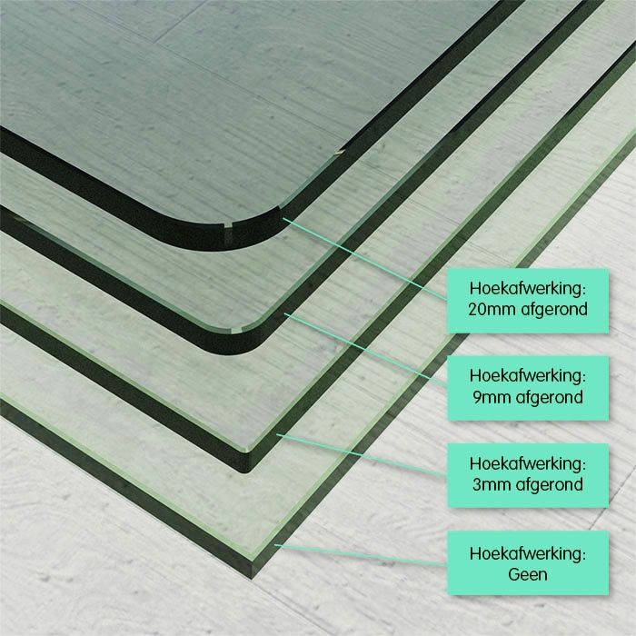 Chinchilla blank glas is geschikt voor bijvb. in een wand, binnendeur of kast. Het figuur zit aan 1 zijde en is verticaal. Een combinatie van afgeronde hoeken zonder geslepen randen is productietechnisch helaas niet mogelijk. Bij het afronden van de hoeken dienen de randen altijd geslepen te worden.