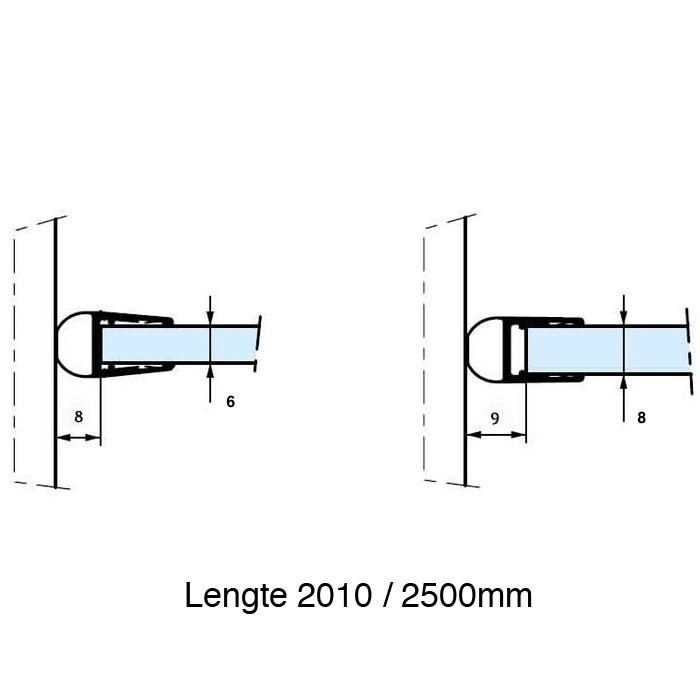 Een douchestrip met bolprofiel is te gebruiken voor het afdichten van de zijkant van een douchedeur. De strip is universeel en niet merkgebonden en kan eenvoudig op het glas worden geduwd. Bekijk wel eerst de technische tekeningen voor de benodigde speling om er zeker van te zijn dat de strip past.