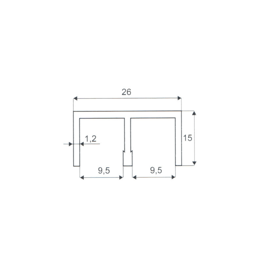 Dubbele bovenrail voor een schuifloket bekleed in verband met geluidsreductie. Aluminium geanodiseerd. Lengte: 2000mm.