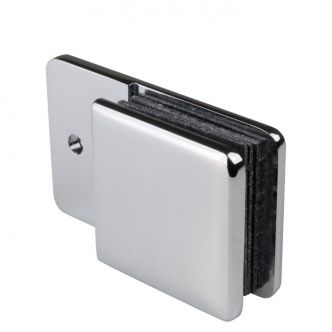 Glasklem voor glas-wand verbindingen van 180 graden zoals b.v. op een badrand of in lijn met een muurtje. Zowel horizontaal als verticaal te gebruiken.