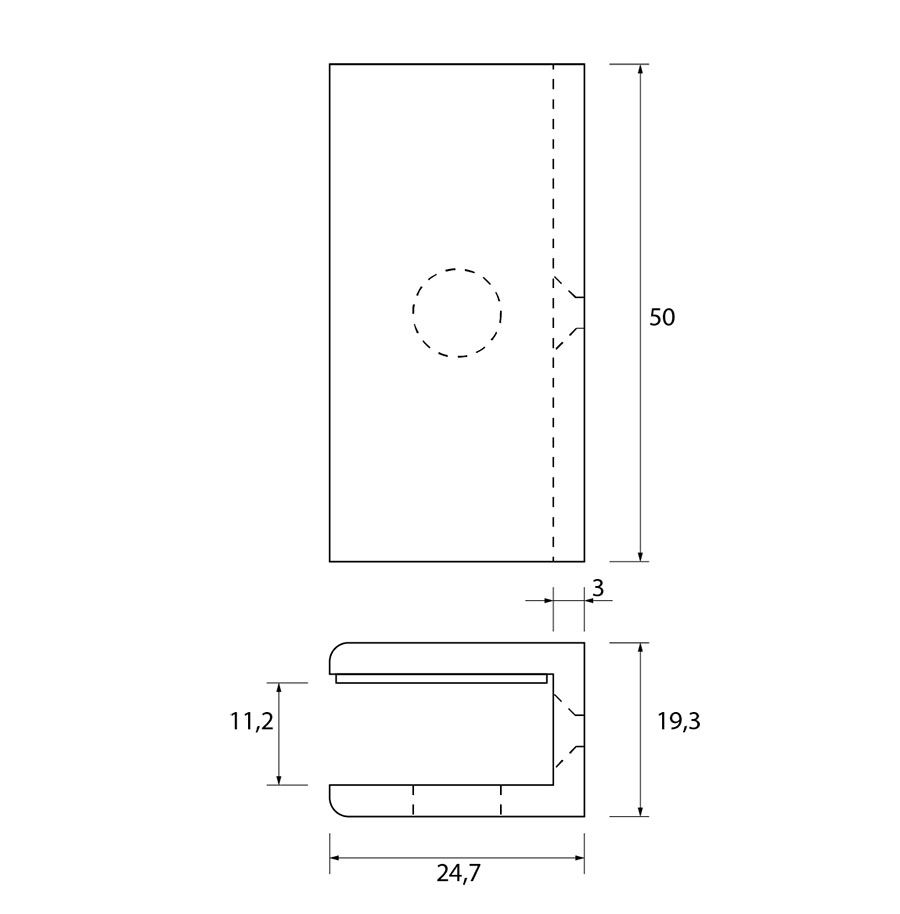 - Mat messing (goud) langwerpige glasplaatdrager