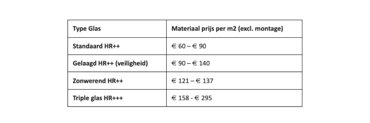 Gemiddelde kosten HR++ glas per m2