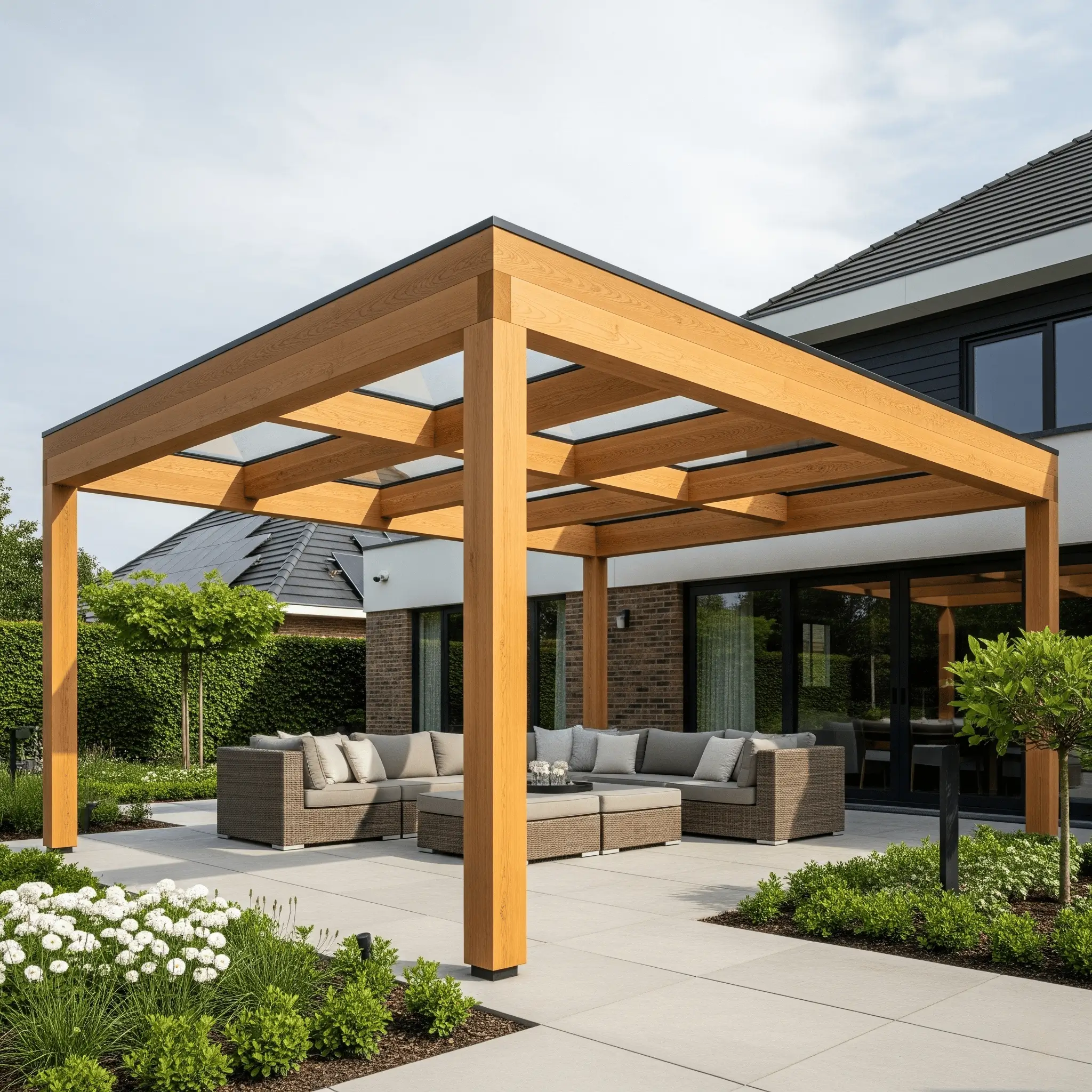 De dikte van het glas cruciaal voor veiligheid en draagkracht. Voor een veranda of overkapping raden wij minimaal 44.2 gelaagd glas aan. Bij bredere overspanningen kan dat oplopen tot 55.2 of zelfs 66.2, zodat het glas bestand is tegen wind, sneeuw en hagel. Te dun glas kiezen is een veelvoorkomende fout die gevaarlijke situaties kan veroorzaken.