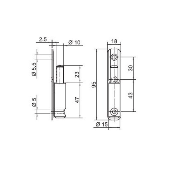Opschroefbare paumelle voor opdekdeuren. Geschikt voor houten, aluminium en metalen kozijnen.
