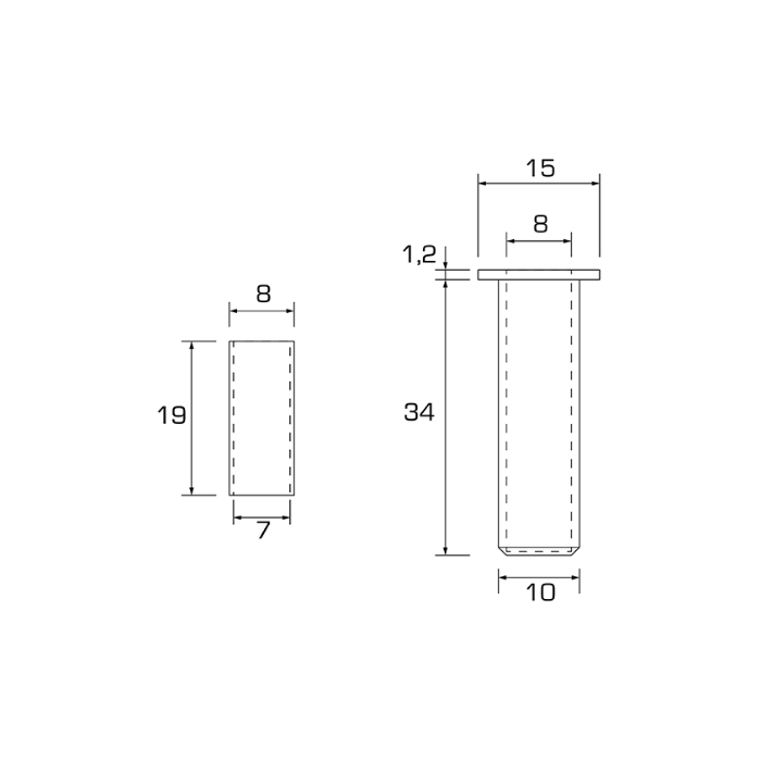 Opvulhuls voor pen voor opdek deurscharnieren. Uit voorraad leverbaar.