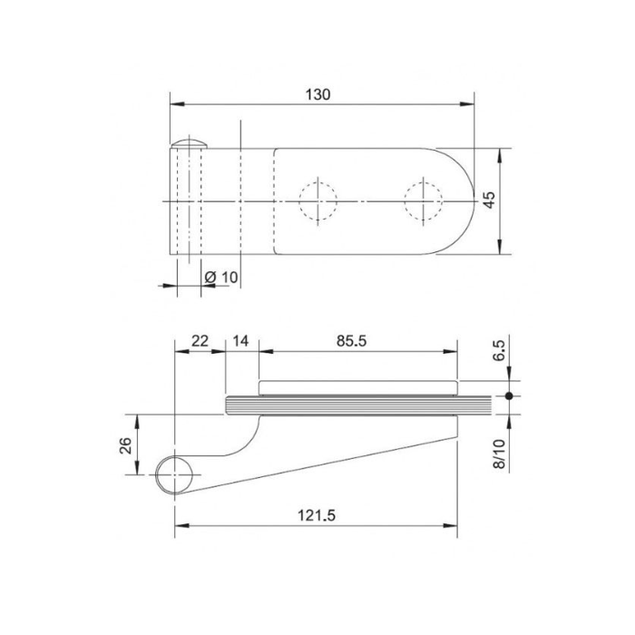 Dit scharnier is geschikt voor een enkelwerkende opdek deur. Dit binnendeur scharnier is afgerond en wordt geleverd inclusief sierhuls. Het scharnier kan toegepast worden bij een glasdikte van 8 en 10mm. Als de deur hoger is dan 2100mm adviseren wij u om 3 scharnieren voor de deur toe te passen. Verpakt per stuk.